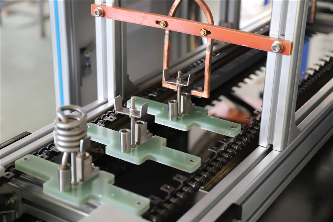 直线式高频感应钎焊机链条式传输:机械采用链条式传输,可根据工艺要求调节传输速度